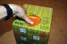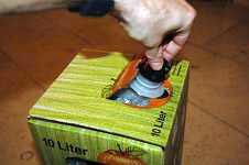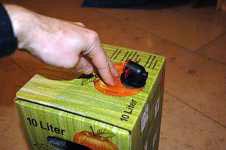 Tip: Stellen Sie den Karton leicht schräg, so das immer Saft am Hahnen anliegt. So verhindern Sie, das Luft eintreten kann.